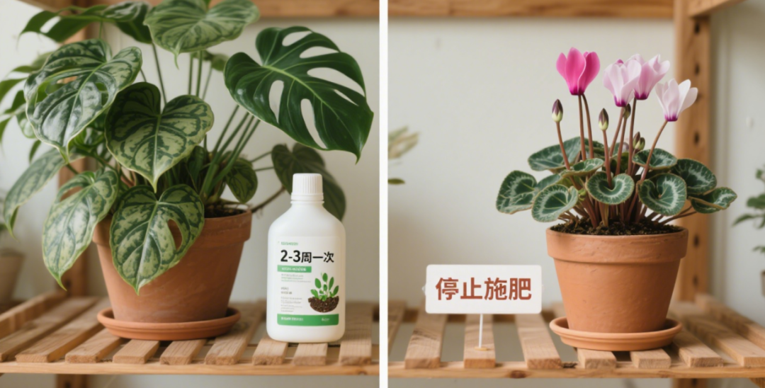 8 月份部分室内花卉仍处于生长期,如龟背竹、春羽等,可每隔 2-3 周施一次稀薄的液肥,以提供充足养分。而对于处于半休眠状态的室内花卉,如仙客来、风信子等,则要停止施肥,以免造成肥害。
