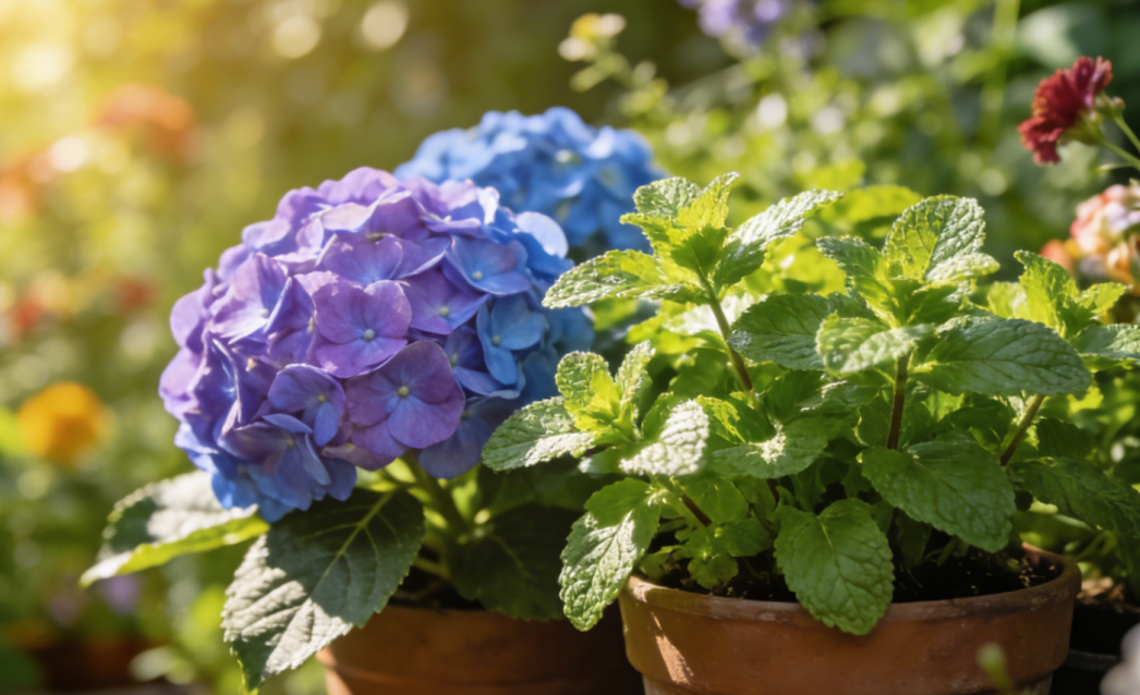 按需投喂别瞎晒!萱草、矮牵牛是阳光爱好者,每天需晒够6小时;绣球、薄荷是半耐阴选手,正午要移到阴凉地,避免叶子晒焦。