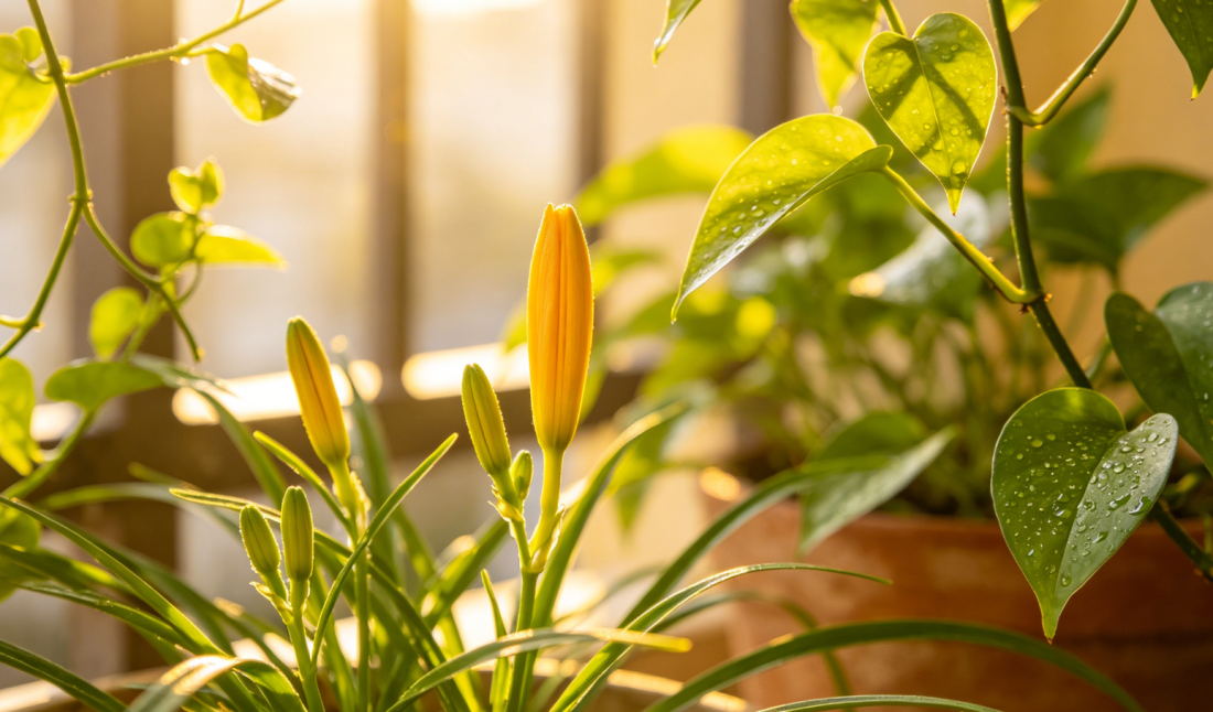 实操技巧:循序渐进增光。绿萝放东阳台或窗边,每天3-4小时柔光,避正午强光;萱草逐步移至向阳处,正午适当遮阴,多开窗通风防积水。