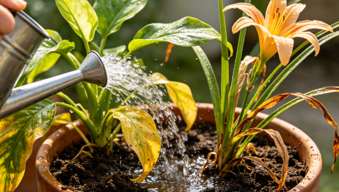 四月风大土干,很多花友见盆土发白就急着浇水,要么一天一次浇成“烂泥”,要么只浇表面让根系缺水,这都是“杀根利器”。绿萝是肉质须根,怕闷怕涝,盆土没干透就浇易烂根黄叶;萱草虽耐旱,4月长新叶时浇水忽多忽少,会导致叶片焦边、整株打蔫。