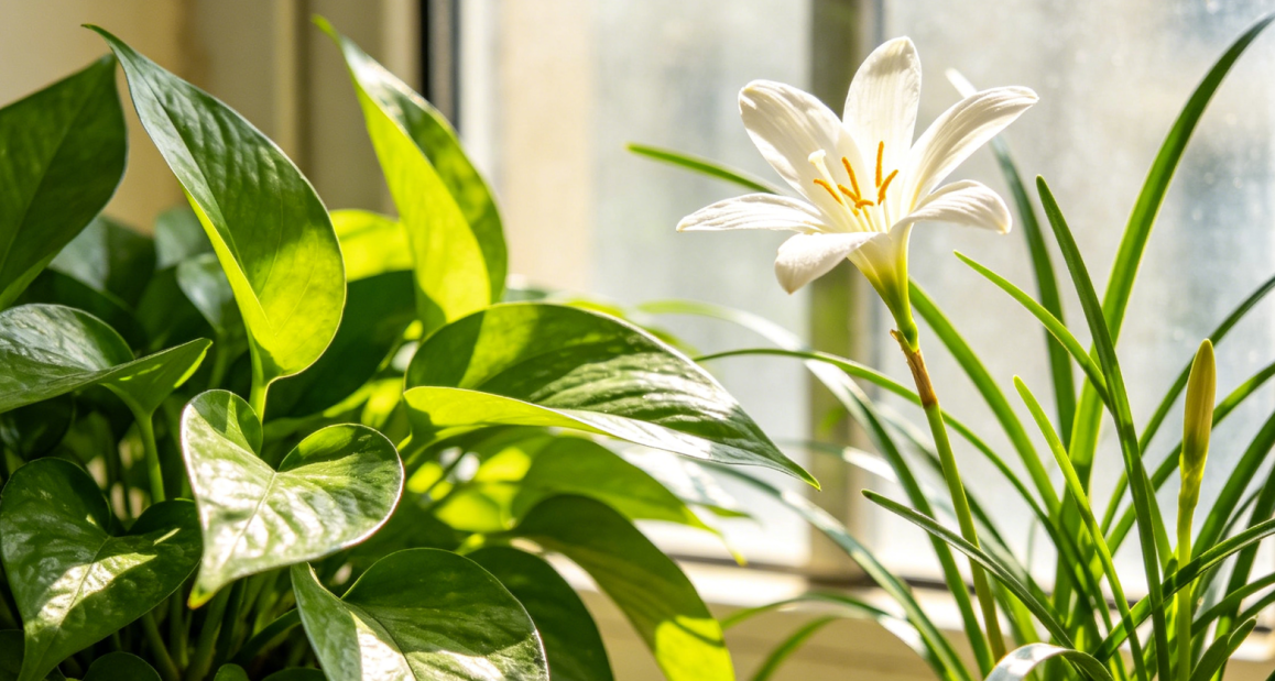 四月阳光渐强,不少花友直接将室内花草移至正午暴晒,绿萝、萱草叶片娇嫩,易晒出晒斑、黄叶干枯;长期放阴暗处,花草徒长、叶色暗淡,萱草难开花、绿萝叶片稀疏。