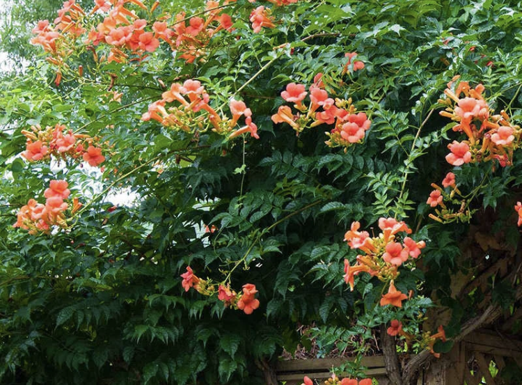 凌霄花属于攀爬藤本植物,一般作为庭院观赏养殖在墙边,它的攀爬能力极其强,很容易爬满整个墙体。在养护中随着枝蔓的生长,需逐段牵引或绑扎在棚架、墙垣、花廊等上,不使其在地面上匍匐生长。根据环境需要,可让部分茎蔓自然下垂,或用铁丝牵引拉其向上攀援生长,上下连成一片,更加飘逸美观。