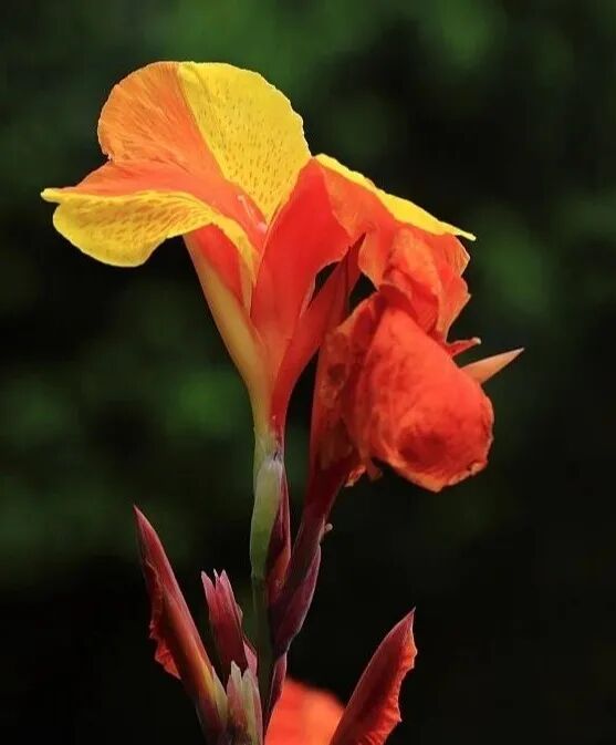 生长期要求光照充足,每天保证至少5小时阳光直射。自然环境阴暗、光照不足,花期会延迟,美人蕉喜温暖,忌严寒,适宜温度在16~30℃之间。花开后,为延长花期,盆栽可移至温度稍低、光线稍暗,环境温度不宜低于10℃的地方。