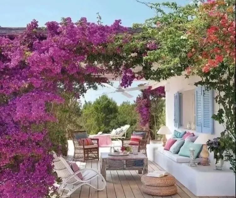 地中海风格庭院中的每个元素都是经过认真考虑之后才加以使用的,特点是休闲舒适。