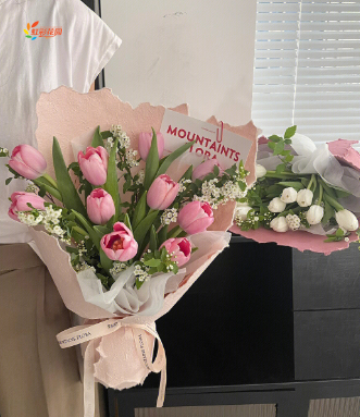 不止玫瑰有爱意,还有郁金香,郁金香清新秀气,做主花、配花都可,恋爱的味道都藏在里面。