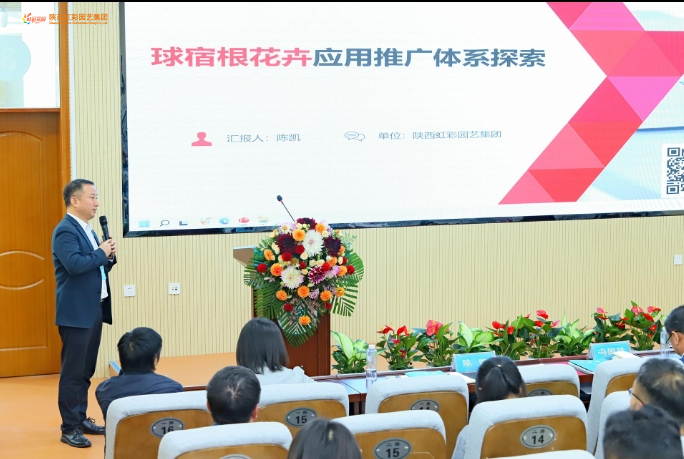 西安市苗木花卉协会会长、陕西虹彩集团董事长陈凯应邀对”球宿根花卉推广、应用体系探索”作出了专题报告,他结合自身丰富的实践经验,对球宿根花卉的推广和应用进行了深入剖析,和参会代表们相互探讨,并当选为中国园艺学会球宿根花卉分会第一届大丽花专家委员会副主任委员。