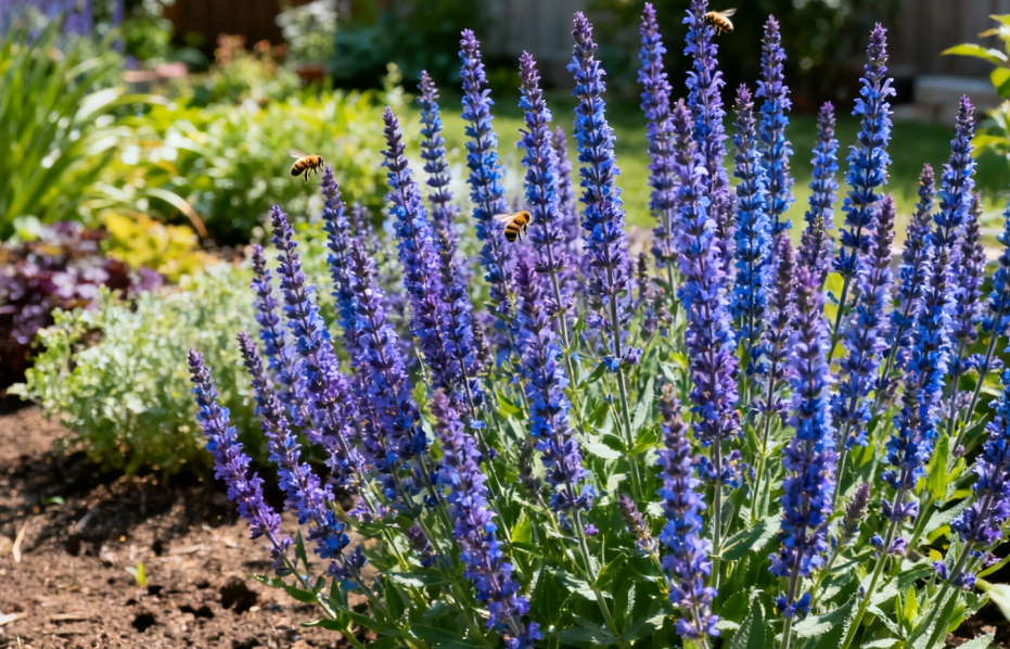 兰花鼠尾草是花境里的 “百搭选手”,细长的蓝紫色花穗从夏初开到秋末,自带清新野趣,还能吸引蜜蜂蝴蝶。它的抗寒能力远超想象,-20℃低温下,地表部分枯萎,但地下根茎能稳稳扎根,来年 4 月就能冒新芽,很快就能长成一片 “蓝紫色花海”。