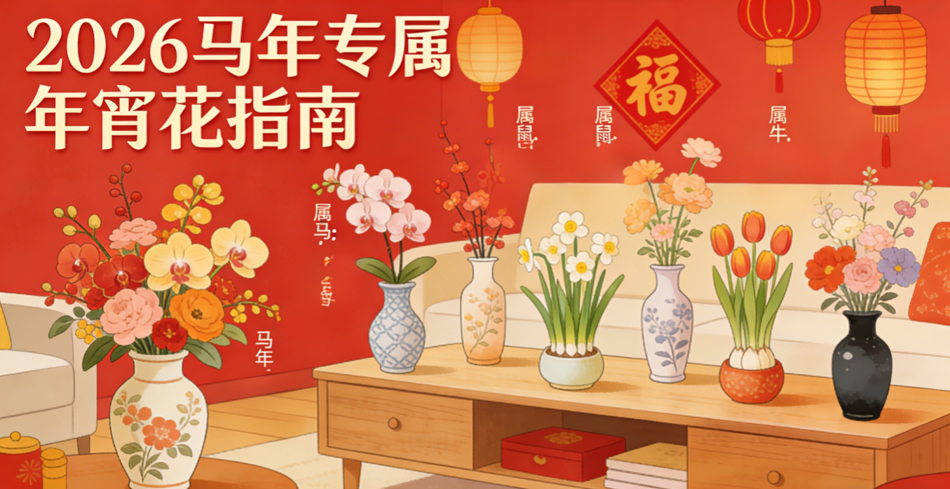春节置年宵花,从来都不是随便选一盆那么简单。藏着的是对新年的期许,是让家宅氛围感拉满的小心思,不同属相的性格与运势各有不同,适配的年宵花自然也各有讲究。2026 马年,为每个属相量身搭配专属年宵花,让花与心意相融,为新年添一抹独属于你的美好色彩。